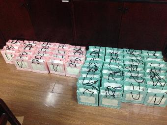 在辅导员简单叮嘱了一些注意事宜后,七点钟,同学们提着49份沉甸甸的、充满祝福的袋子,到水利馆自习室寻找正在刻苦奋战考研的同学们。为了不打扰自习室里其他同学们的自习,每到一个新教室,大家便先从门上的小窗口向里面观察下是否有名单上的同学,然后在自习室外提前把专属于他们的礼物挑出来,再送进去。同学们拿到礼物后都格外的激动和欣喜,不停地向发礼物的同学表示感谢,几个性格外向活泼的女孩子更是高兴地拿着袋子拍了合影,温馨的场面让发礼物的同学们也十分开心,大家都说自己像可爱的圣诞老人。分发活动大概用了半个多小时,一些正好回寝室休息没有在自习室的考研同学也陆续地在晚上收到了由同学们们带回去的礼物。