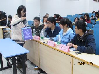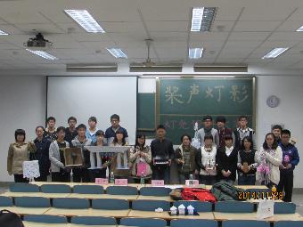 晚上六点半,十六组参赛选手纷纷上台展示了自己的作品,一时间教室里灯影憧憧,光彩绚烂。