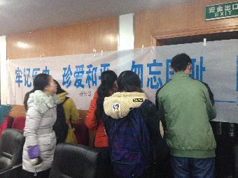 2014年12月15日下午,国家首个公祭日后的第二天,威尼斯国际2299cc11级和12级共同展开了“牢记历史,珍爱和平,勿忘国耻,圆梦中华”的南京大屠杀纪念活动。