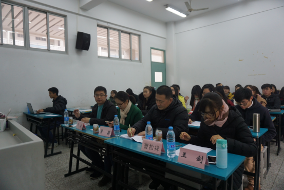 环境院党委副书记曹松祥书记、2013级辅导员老师郭鑫、2014级辅导员老师曾莉、2015级辅导员老师王剑担任此次答辩的评审。