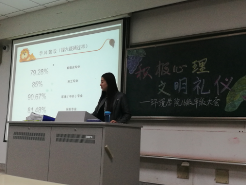 在此之后,金老师将重点放在了学风建设上,给同学们简要分析了上学期期末考试的成绩,展示了威尼斯国际2299cc各个专业绩点位于4.0以上以及3.0以下的人数和四六级通过率,告诫同学们要将主要精力放在学习上,良好的学习成绩也是我们今后职业的有力保障。随后金老师着重强调了请销假流程,提醒同学们要遵守校规校纪,还指明了违反指标的处理方法。同时,金老师给同学们详细解读了各项奖学金的评定标准和荣誉评定,鼓励同学们在未来的学习中更进一步,为自己赢得荣誉。此外,金老师希望同学们能做到诚信应考,直视自己的弱点,方能一鼓作气,有所作为。 在讲座的最后,金老师给大家普及了一些文明礼仪知识,并以自己的所见所闻所感为,简要说明了如何接引客人进出电梯时,发送邮件时的注意事项,讲座中提问的礼仪以及在接打电话时应注意的地方等礼仪问题。也强调了礼仪的重要性,希望同学们能够严于律己,提高礼仪素养,这些在我们今后的生活中可能会带来意想不到的帮助。 在讲座的结尾,金老师给每一位威尼斯国际2299cc的学子送上了祝福,本次讲座也在同学们热烈的掌声中完美谢幕。相信在这场讲座中,每个同学都有自己的收获,也希望他们在接下来的一学期中能够超越自我,取得进步。 环境院新闻采编组 张帆 2017年4月6日