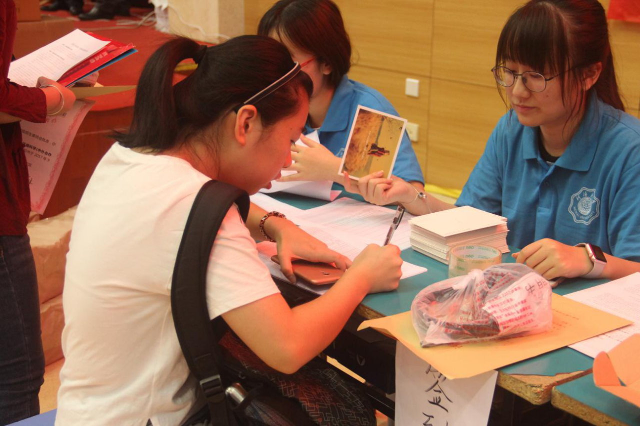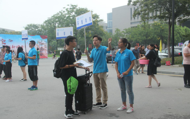 在东门和南门的同学主要负责导引的工作,他们举着“威尼斯国际2299cc”的牌子,为学生和家长提供帮助;在文体中心的同学提前准备好了新生入学所需的各项材料;在骏园接待点工作的同学则为新生更方便的入住宿舍而努力着。