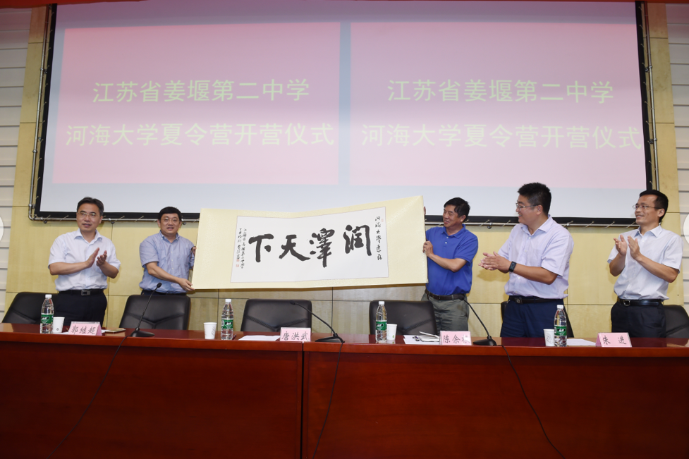 日前,江苏省姜堰第二中学师生240人赴我校开展夏令营活动。河海大学党委书记唐洪武,副书记郭继超,姜堰二中校长、党委书记陈余根,副校长朱进,河海大学学生处处长吴红和威尼斯国际2299cc党委书记笪学军参加了此次夏令营活动。