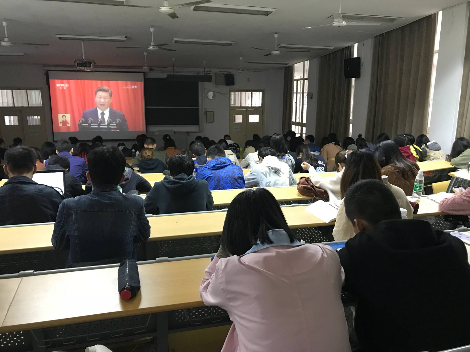 威尼斯国际2299cc师生认真观看十九大开幕会