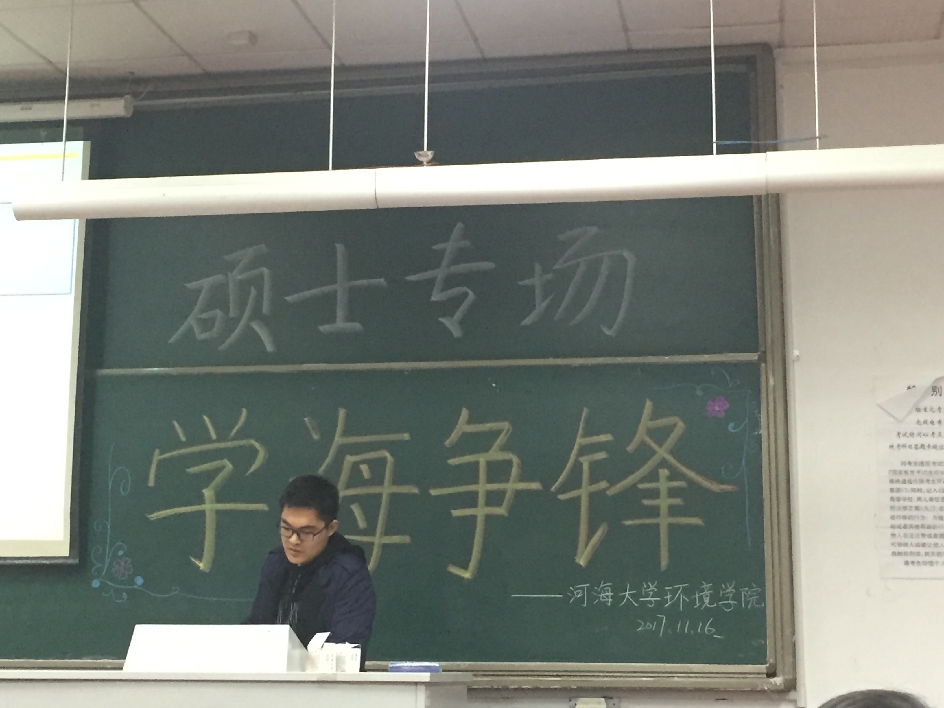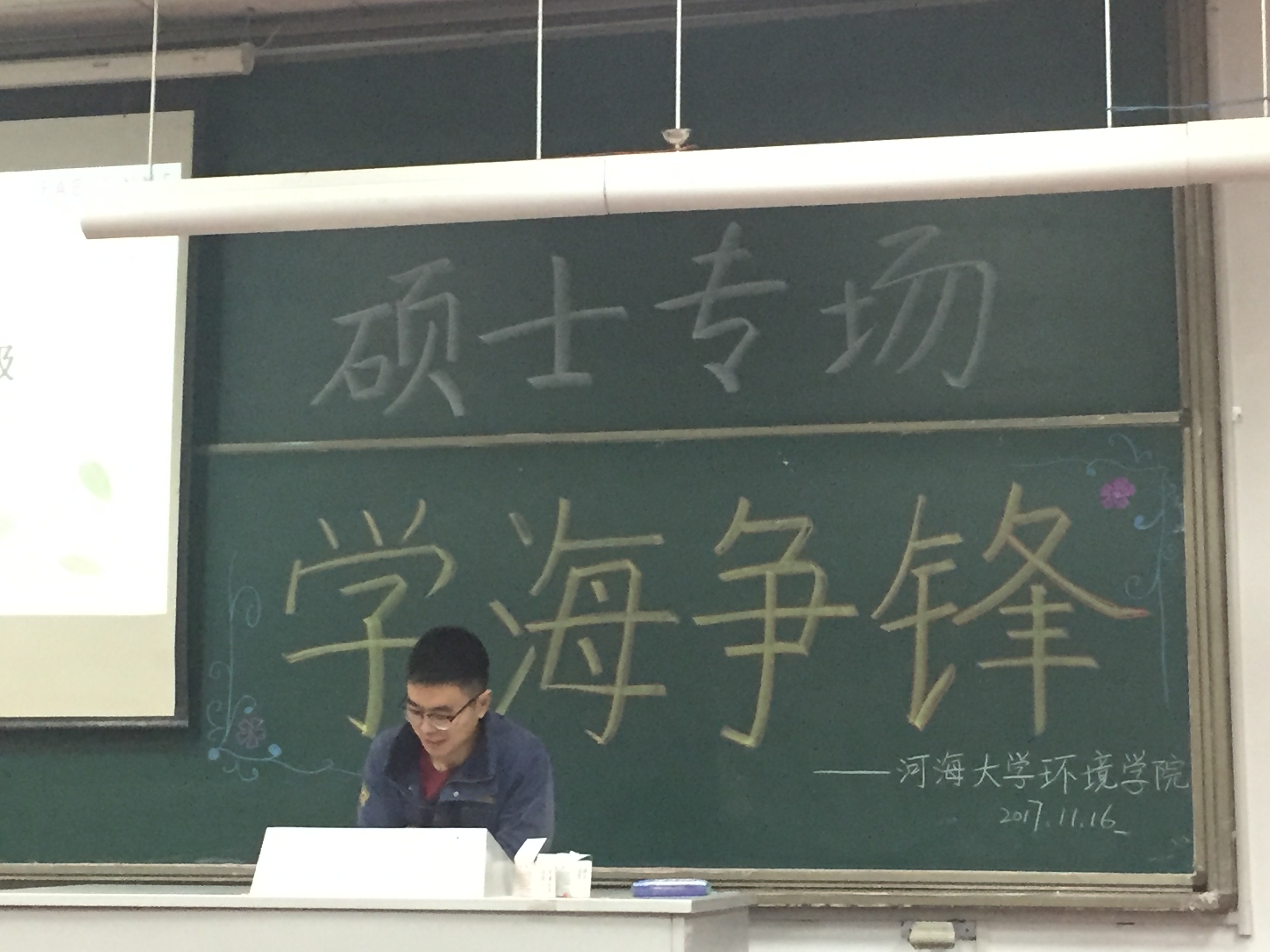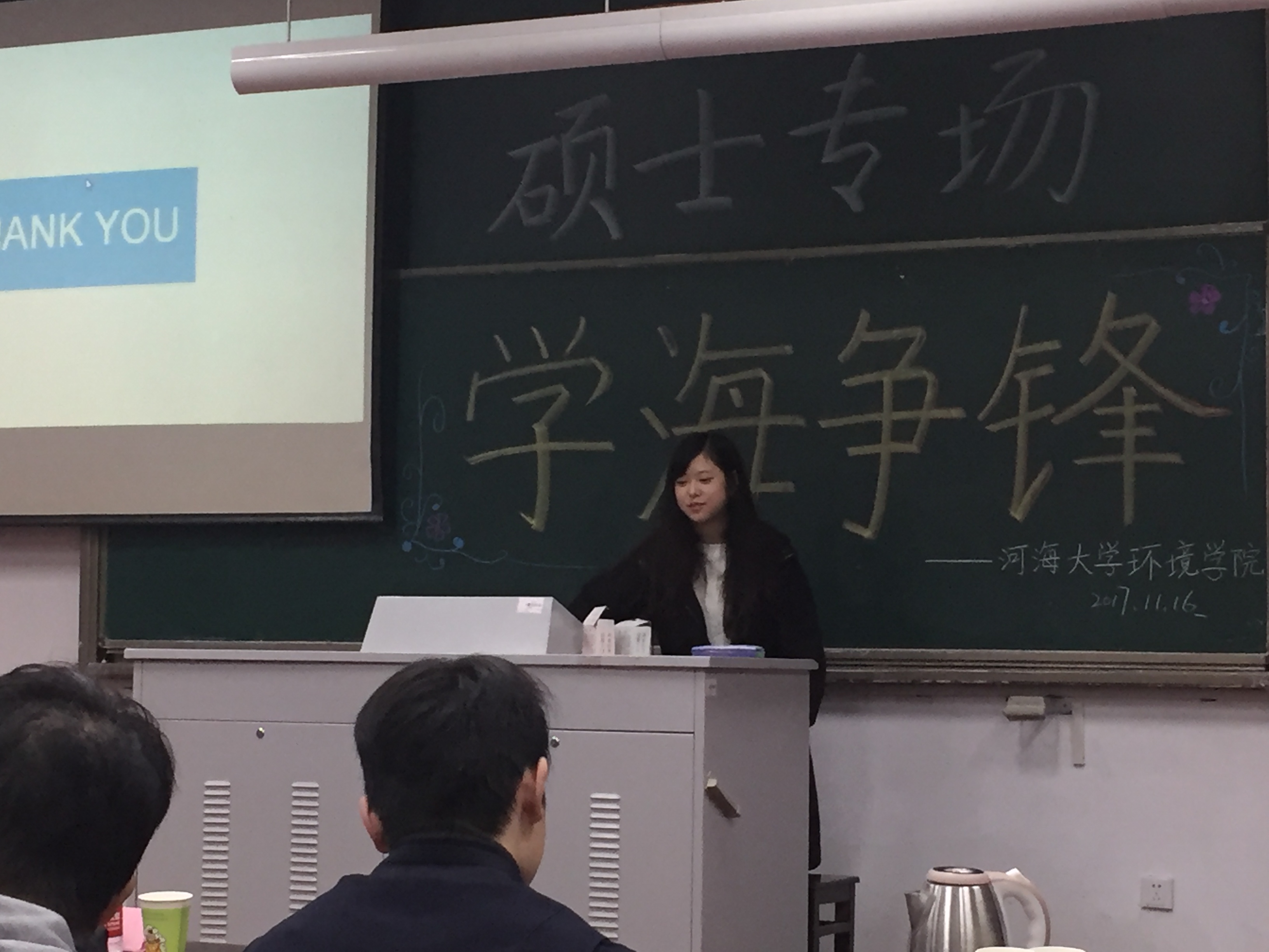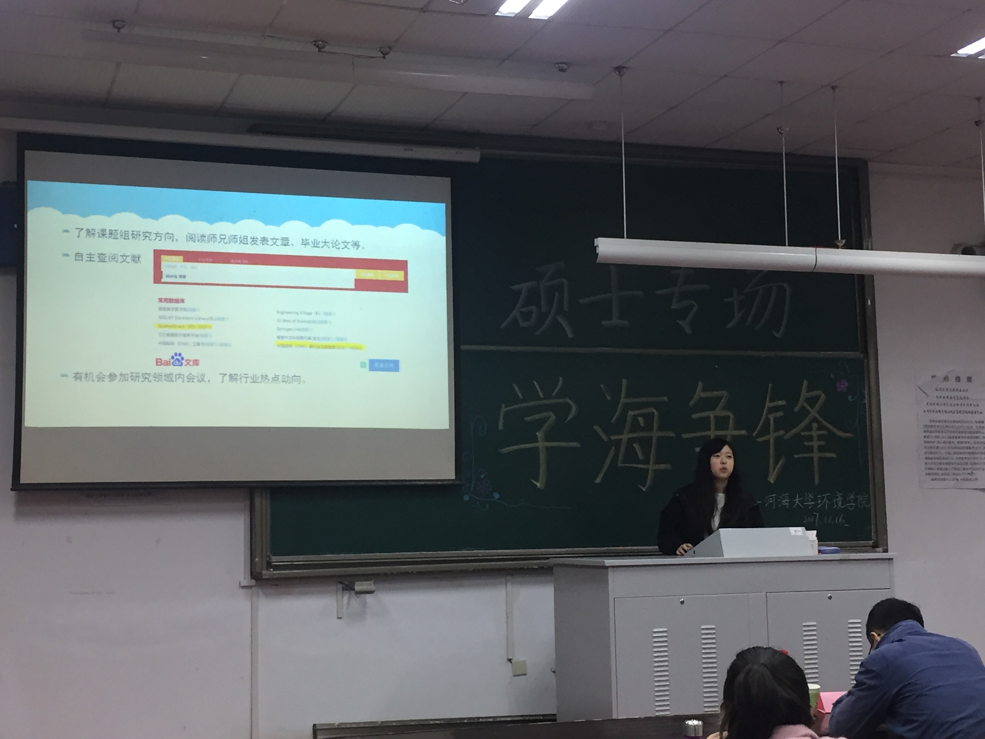 2017年11月16日下午,由威尼斯国际2299cc研会研科协策划并举办的“学海争锋——硕士专场”学术讲座于水利馆B101教室举行。本次讲座的三位主讲均是威尼斯国际2299cc优秀的研究生,都是今年国家奖学金的获得者,分别是16级市政工程专业的曹臻、15级市政工程的张佳男、15级环境科学与工程的沙海涛。