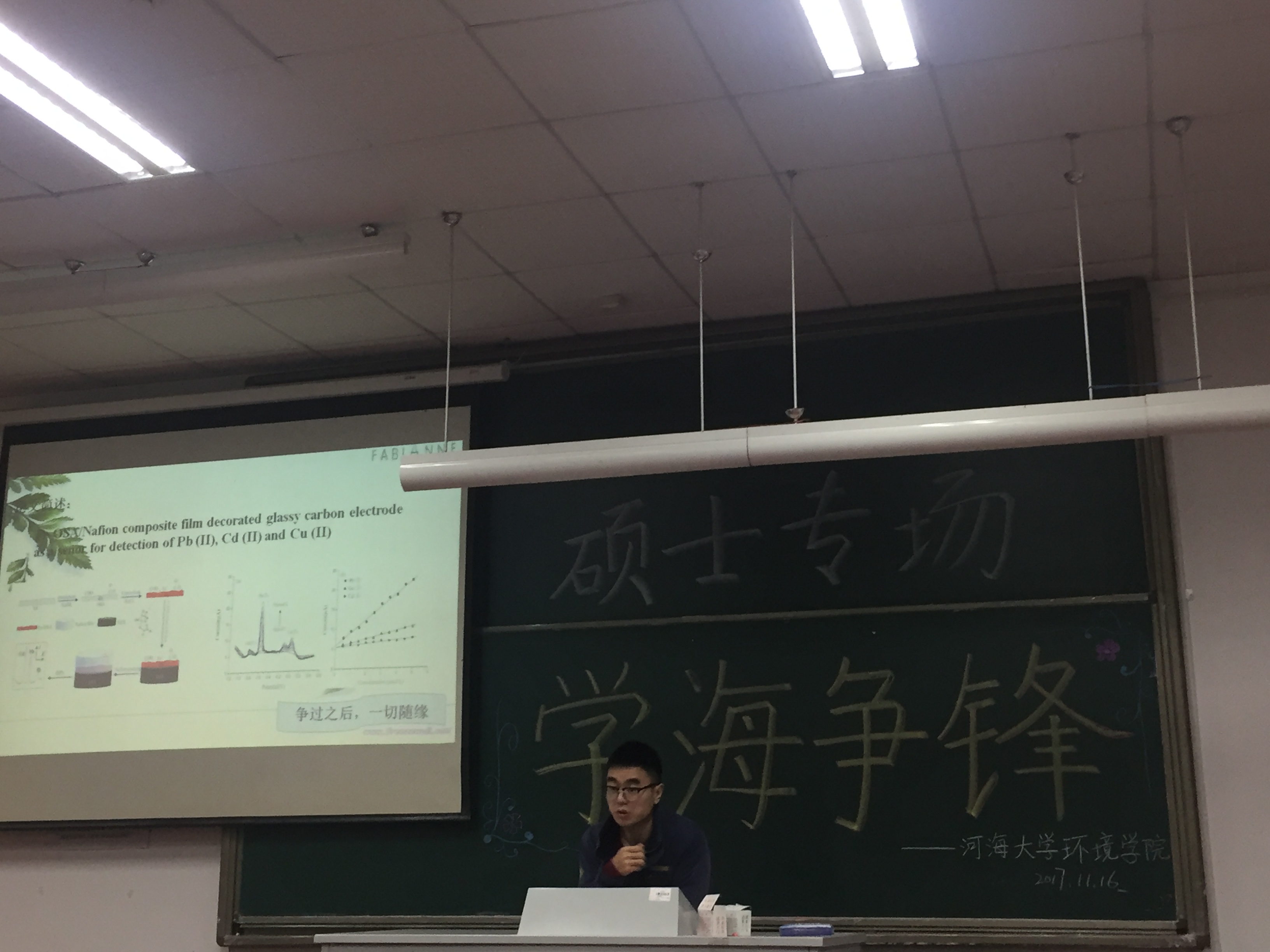沙海涛师兄以自身对三年研究生生涯的规划和经历感受给我们这些后面的师弟师妹们作出榜样和提出建议。首先,沙海涛师兄给我们分享了他两年多以来的研究生学习生活,研一的时候以基础课程为主,并撰写申请了很多专利以及发表科技核心的文章;研二的时候主要参与大量的项目,并写了4篇SCI(师兄的建议是多多益善);研三到目前为止主要是找工作和撰写毕业论文。接着,师兄对我们说时间太少、任务太多、珍之惜之。虽然我们的生活前期可能会有迷茫和不知所措,但是我们要尽快的调整好自己,因为时间不等人,要有目标、有规划、有行动。师兄最后嘱咐我们,尽管有很多东西我们很难去改变,但是那些可以改变的,我们要付出足够多的努力。
