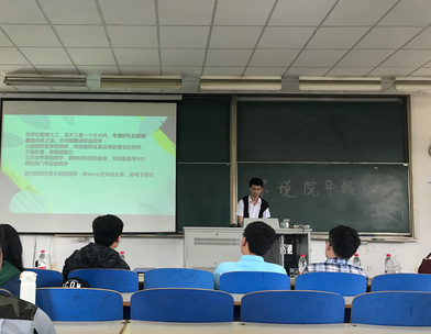 本次年级大会于4月19日下午三点五十在致用201举行,会议由金意倩老师主持。此次年级大会专门为同学们请来了优秀的14级学长学姐就关于未来大四保研、考研、就业、考公务员、出国各方面传授经验,并解答同学们提出的问题。