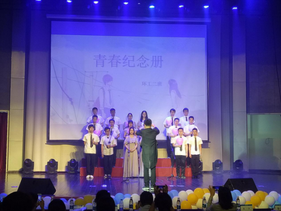接下来,就是本场晚会的主角们——18届威尼斯国际2299cc的毕业生们的主场。首先登上舞台的是14级环境工程专业2班的同学们。《青春纪念册》在同学们充满朝气的演唱下,仿佛将我们拉回到四年前,离家形单影只的我们,怀着对自由的渴望和未来的憧憬,拥抱河海。