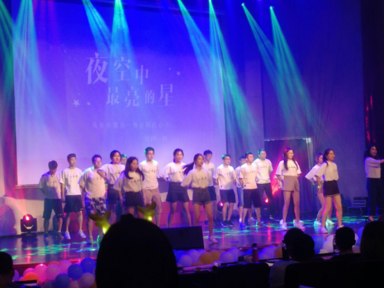 紧接着是由14级给排水1班的同学们带来的歌舞节目《夜空中最亮的星》。整齐划一的齐舞,还有少男少女们充满激情的演唱,励志的歌词,拨动了大家的心弦。