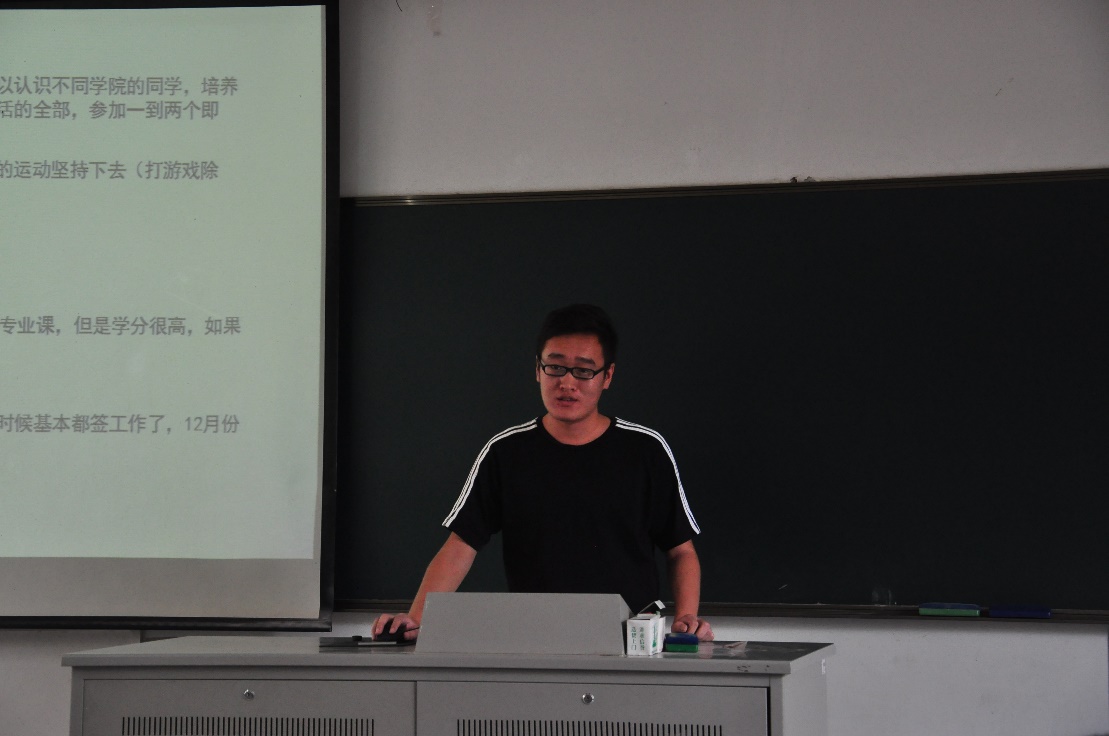 范任君学长告诫新生们不能盲目自信和乐观,不能恣意放纵,大学生活的重点还是在学习。大学四年的时光十分短暂,同学们要学会珍惜,要主动为自己创造机会与条件。