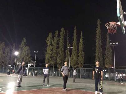 六点半,两位老师组织课前集合,并进行篮球赛事的规则的简单讲解。