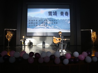 非洲鼓配吉他,再加上干净澄澈的西藏嗓,扎西罗布和吴嘉的表演将雪域的纯净表现的淋漓尽致。而后,七位西藏姑娘的舞蹈更是呈现出了西藏独有的民族特色,含蓄典雅的舞姿表现出了健康与优美,让同学们充分领略到了藏族风情,感受到了“雪域青春”。