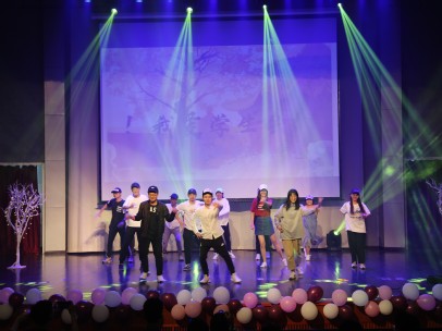在晚会的末尾,17级学生会成员们为18级迎新晚会画上圆满的结束帷幕。他们不仅伴着经典老歌,头戴帽子元气舞蹈,还学习了当下流行鬼畜舞蹈,给台下观众们带来许多欢笑。他们活力满满,笑意盈盈,他们在台上对新生同学们真挚的表达了爱的告白,为本次迎新晚会划上了完美的句号。