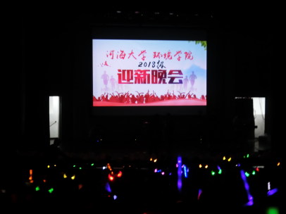 夜空中有着最亮的星,环境院迎新晚会的黑暗里有着最亮的你。河海双截棍社为新生展现了耀眼璀璨的《将进酒》。鼓点阵阵,花火四溢,人心振奋。当流光溢彩随着双截棍的舞动划破黑暗,当黑袍道服的学长挥动双臂,当台下学生荧光棒与呐喊此起彼伏时,全场的气氛被带动到另一个高潮。