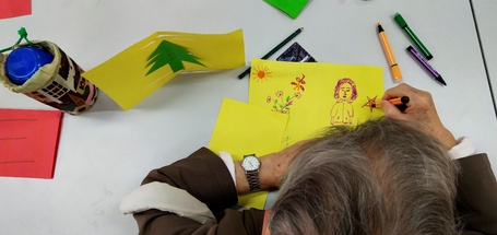 制作贺卡的过程中,老人们和志愿者相处得其乐融融。很多老人一边做着贺卡一边向大家讲述他们的青春故事,而志愿者们也听得津津有味,不时和老人们交谈几句。还有老人为志愿者悉心做出“花开四季”的绘图贺卡,字句之间表达了老人心中对志愿者最真挚的祝愿。