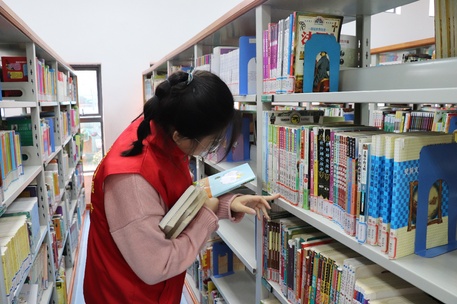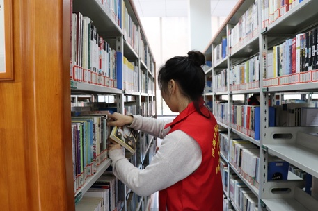 刚开始志愿者们有些生疏,所以寻找图书编号对应的书架还有些困难,但随着在书架间的一次次穿梭,志愿者们愈发熟练从容,不但能迅速找到图书应该摆放的位置,还能做到摆放整齐,在读者越来越多的时候,还能做到在快速摆放图书的同时不打扰到他人。除了将读者归还的书籍摆回原位,志愿者们在稍微闲下来的时候还将书架上原本错乱的书籍摆放正确,一刻都不松懈。