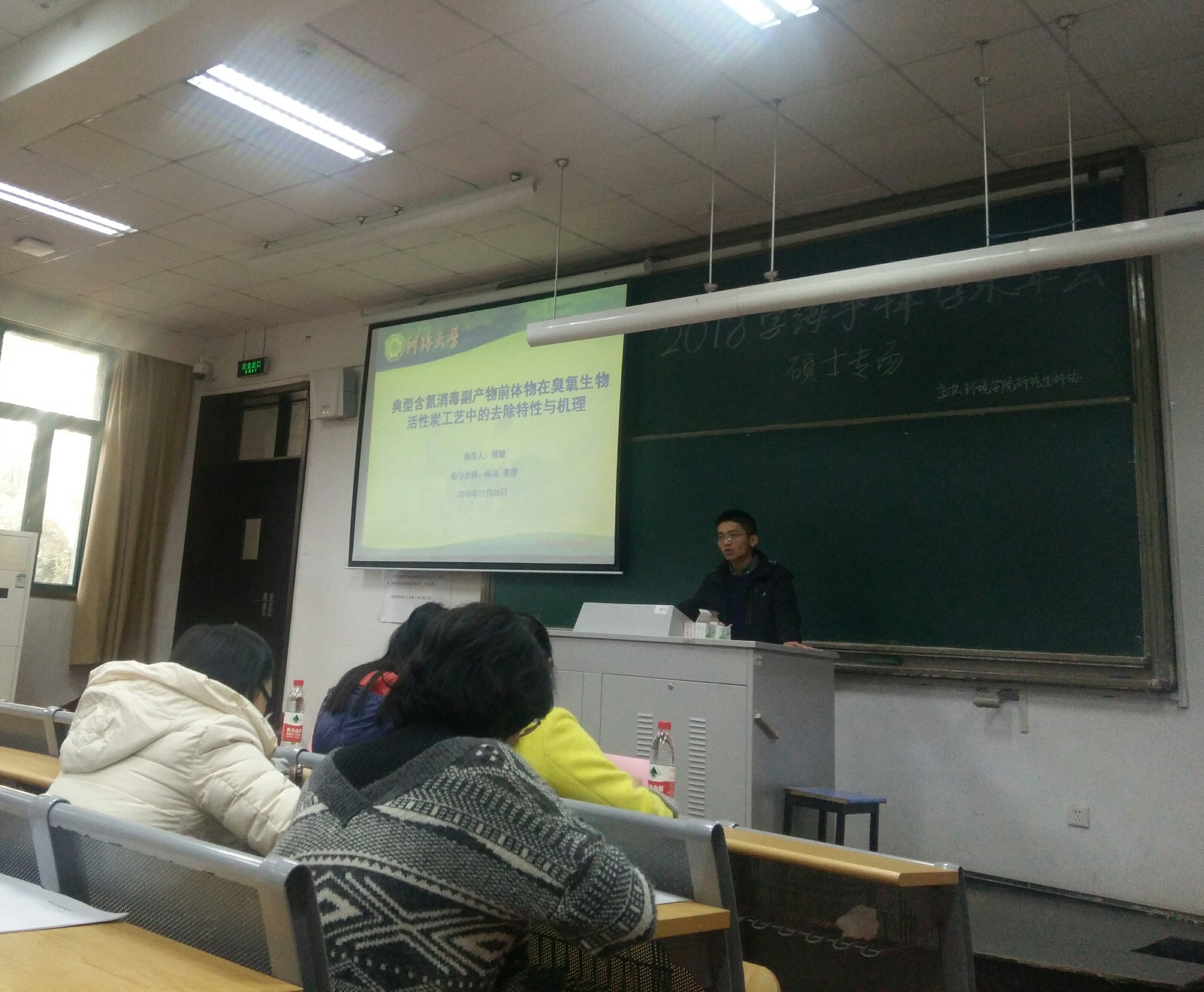 最后,郑健师兄以“典型含氮消毒副产物前体物在臭氧生物活性炭工艺中的去除特性与机理”为主题,对相关概念和研究成果进行了介绍。