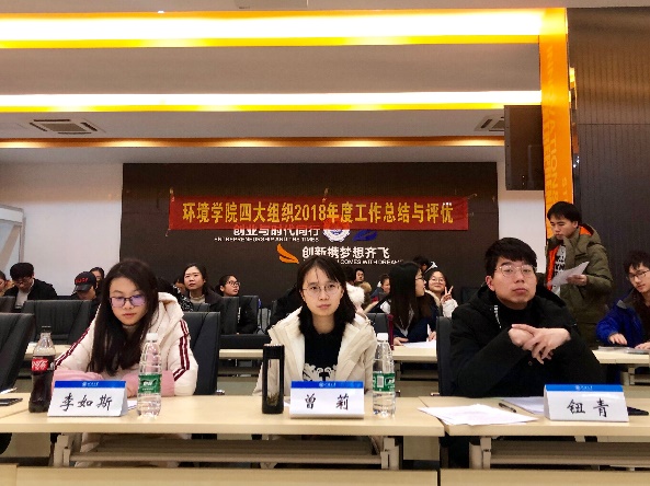 本次优秀部门及干事评选会向我们展示了环境院学生工作者的优秀成果,对同学们有一定的模范指导作用,更营造了为学争优的良好氛围,促进人员间工作经验的交流。