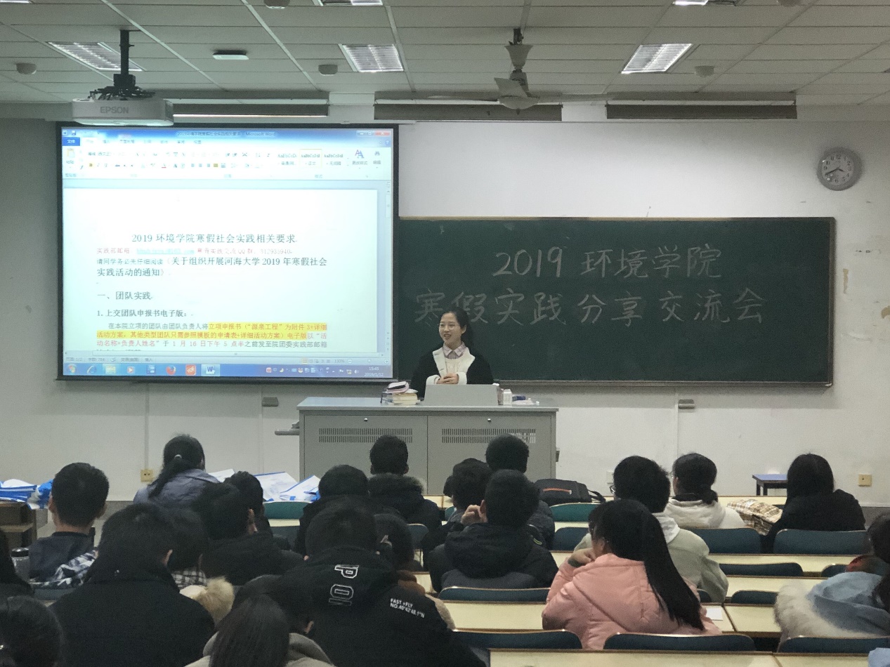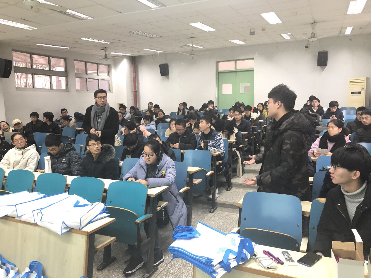 2019年1月12日下午三点整,威尼斯国际2299cc寒假社会实践分享交流会在致用楼120教室如期举行。因为此次寒假社会实践同学选择的主要项目是源泉工程,所以威尼斯国际2299cc团委实践部特别邀请三位在去年在此类寒假社会实践中有突出表现的17级同学来到现场,为18级同学们分享他们的经验。