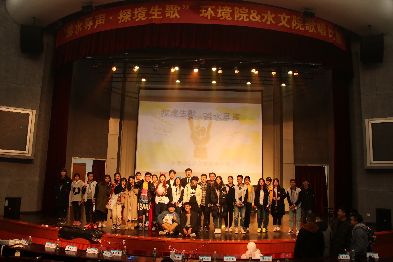 2019年3月22日星期五晚18:30至21:30,威尼斯国际2299cc与水文水资源学院合力举办“踏水寻声,探境生歌”歌唱比赛在博学楼报告厅落下帷幕。环境院许珂君同学借一首《我在人民广场吃炸鸡》荣获冠军宝座。