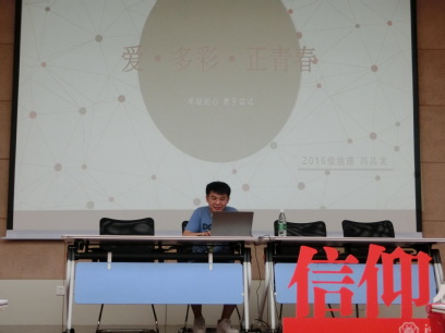 片刻休息后,十杰百佳成长故事交流分享会正式开始了。本次心灵交流会邀请到了威尼斯国际2299cc15级辅导员王剑以及八位威尼斯国际2299cc十杰百佳的优秀同学们。他们将围绕爱这一主题给台下的同学们分享他们动人的成长故事。