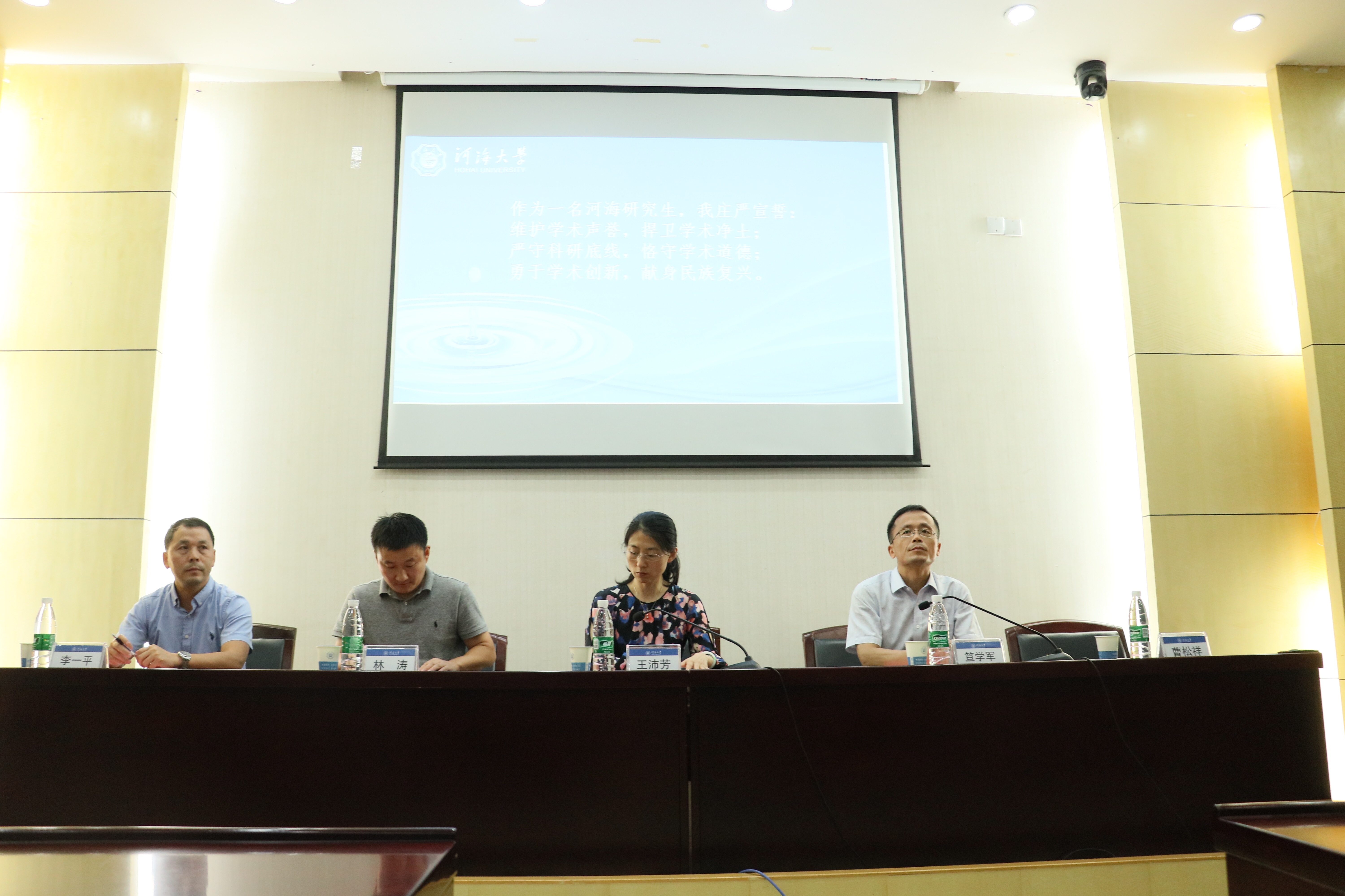 典礼伊始,王沛芳院长亲切地向同学们介绍了学院的历史发展以及学院在机构设置、师资队伍、科研平台、国际交流、人才培养等方面取得的成果。她对新同学提出了学而且有获及重视身体健康,规范学术行为,勇于直面挫折的三点寄语。随后在院党委书记笪学军的带领下,全体学生举右手握拳,做恪守学术道德宣誓。