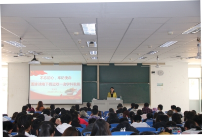 下午2点水利馆301,笪书记向师生党员讲了题为«中国共产党的初心与使命»的主题党课。他从三个方面进行阐述,一是中国共产党的初心与使命之基本内涵;二是中国共产党不忘初心、牢记使命的实践历程;三是新时代中国共产党不忘初心、牢记使命的实践路径。中国共产党的初心与使命就是“为中国人民谋幸福、为中华民族谋复兴”,大家要牢记为中华民族谋复兴的远大目标。改革开放四十年,中国取得了令人瞩目的成就,国际影响力日益增强,但是依然面对很多挑战。中国强起来,不能离开青年的不懈奋斗。笪书记启迪广大学生党员思考当代大学生的初心是什么?如何在新时代共同实现伟大梦想?