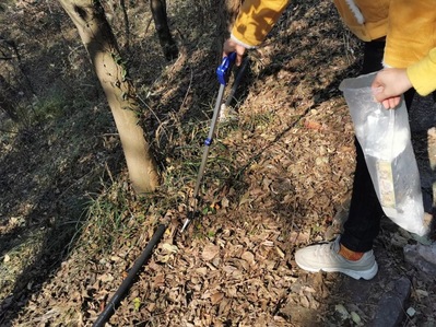 爬山过程中,大家注意到道路旁设有许多垃圾桶,并且有环卫工人专门负责垃圾清理。然而,同学们仍然在道路旁发现了不少游客遗留的垃圾,它们不仅影响了紫金山的优美风景、加重了环卫工人的负担,更对环境造成了污染,于是,同学们将垃圾及时捡拾起来放到垃圾袋中。