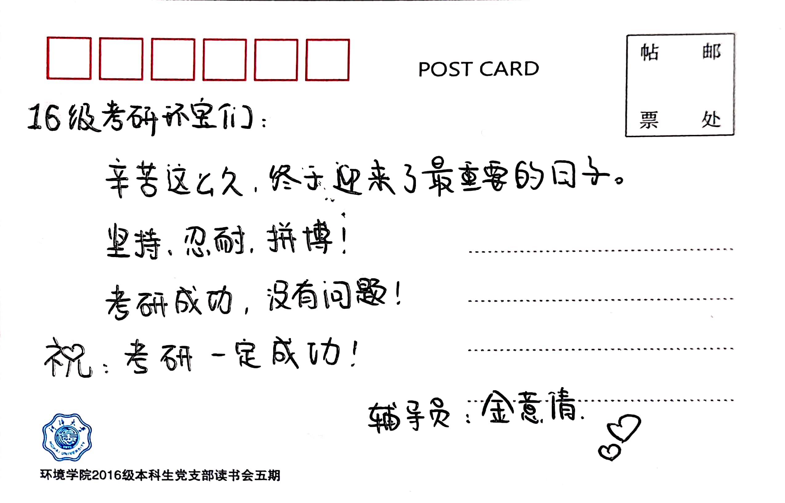 图5本科生环科党支部给考研同学的寄语