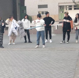 一支接一支队伍奔跑着赶来致用楼大楼梯前方,在志愿者们介绍了游戏规则后,不少同学对转呼啦圈跃跃欲试,在游戏正式开始前就试着转起来呼啦圈,女生们的表现尤为突出,男生们的表现也相当了得,引来阵阵赞叹。