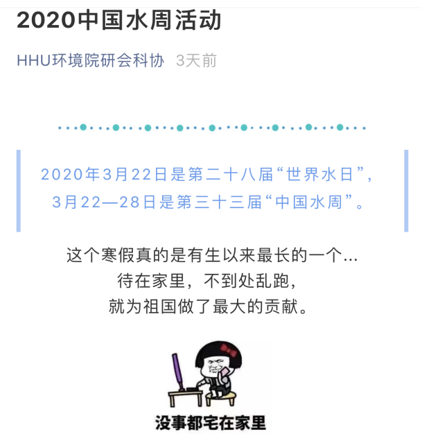 为了深入贯彻习近平新时代中国特色社会主义思想,推动尊重自然、顺应自然、保护自然的生态文明理念深入人心,普及科学知识,2020年“世界水日”,“中国水周”活动期间,威尼斯国际2299cc研究生会开展主题为“坚持节水优先,建设幸福河湖”的节水知识线上答题PK活动。