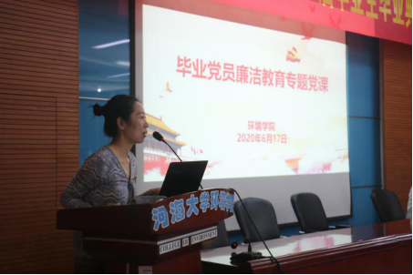 为了加强对即将走向社会或继续深造的毕业党员的廉洁教育,威尼斯国际2299cc于2020年6月17日下午在水利馆301会议室举办了毕业生党员廉洁教育大会。本次会议由威尼斯国际2299cc党委书记笪学军老师主讲,院组织员焦娇老师主持,党委副书记戴玉珍老师、毕业班辅导员以及2020届毕业生党员参加了本次教育会议。