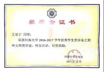 3.河海大学2016-2017学年优秀学生奖学金之“精神文明”奖学金
