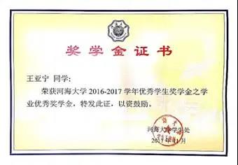 2.河海大学2016-2017学年优秀学生奖学金之“社会工作优秀”奖学金
