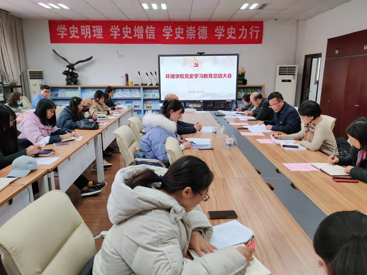 王沛芳院长在讲话中表达了对校第四巡回指导组一年来悉心指导的衷心感谢,并指出要认真贯彻落实好此次会议精神,巩固拓展好学院党史学习教育成果:一是继续深化理论学习。深入学习贯彻习近平新时代中国特色社会主义思想,自觉做“两个确立”的坚决拥护者和“两个维护”的坚定践行者。二是加强理论联系实际。切实把理论学习成效转化为推动学院发展的实践动力,发挥环境人“敢为人先、勇立潮头”的拼劲,不断把学院工作推向新高度。三是建立党史学习教育常态化、长效化机制。持续推进党史学习教育,并与教育教学深度融合,教育学生自觉厚植爱国情怀,传承红色基因,坚定历史自信,更加奋发有为,以优异成绩迎接党的二十大胜利召开。