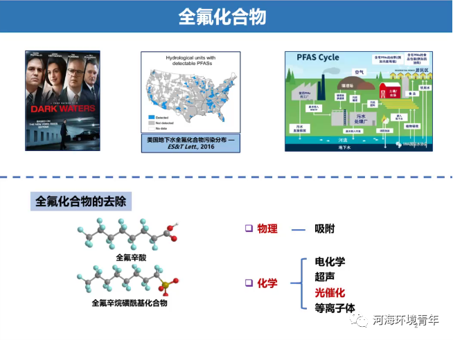 王教授介绍目前全氟化合物的去除技术主要有物理和化学处理两个大类,其中化学处理又分为电化学、超声处理、光催化、等离子体等多种处理方法。
