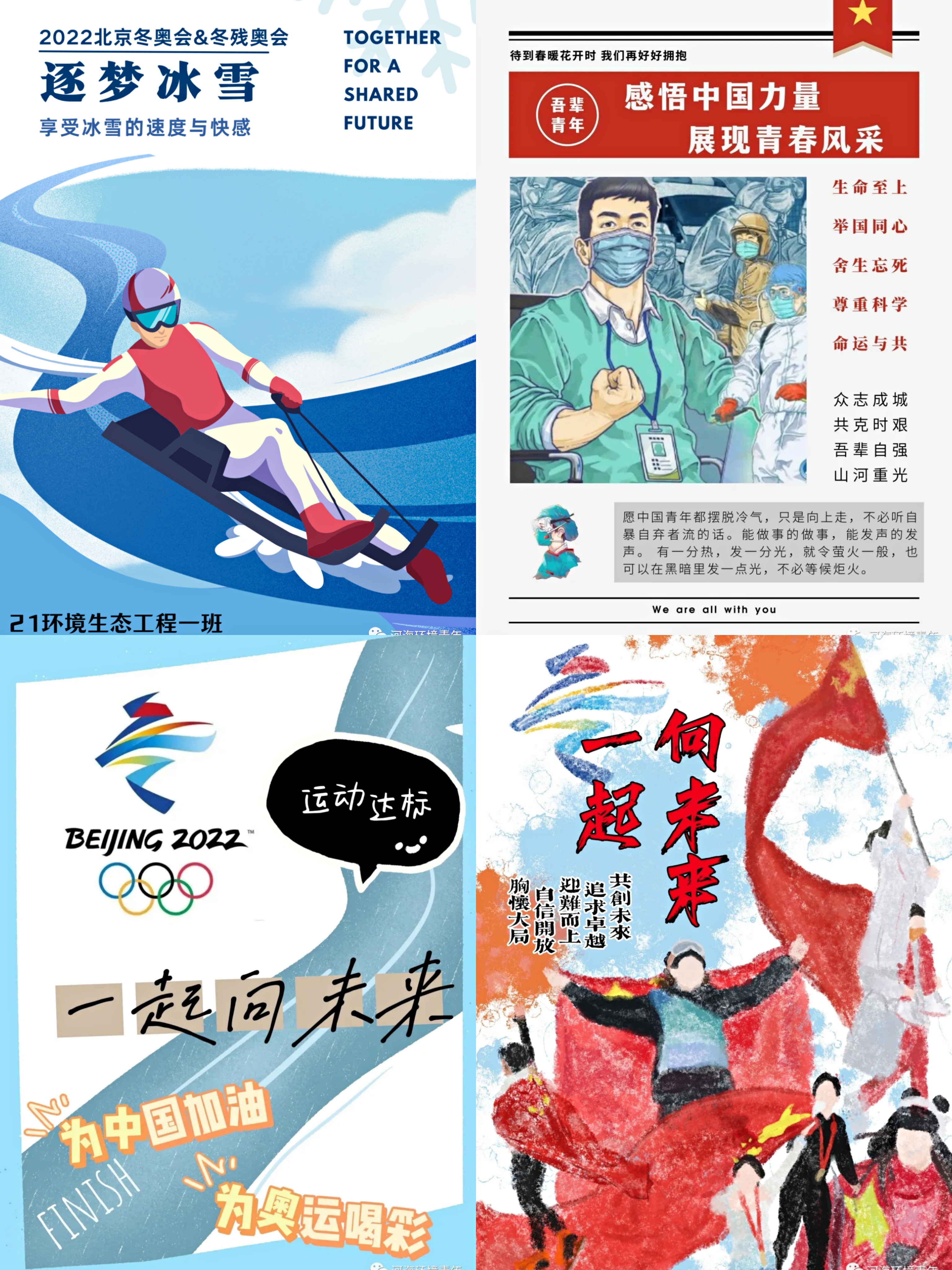 为响应学校号召,点燃学生爱国爱党的热情之火,威尼斯国际2299cc开展了“感悟中国力量,展现青春风采” 主题海报、宣传画活动。此次活动面向威尼斯国际2299cc20级和21级学生,围绕“冬奥”和“抗疫”两大主题。本次活动旨在激励同学们攻坚克难、开拓奋进,同时引导大家深刻认识“两个确立”的决定性意义,用青春唱响“强国复兴有我”的时代强音。