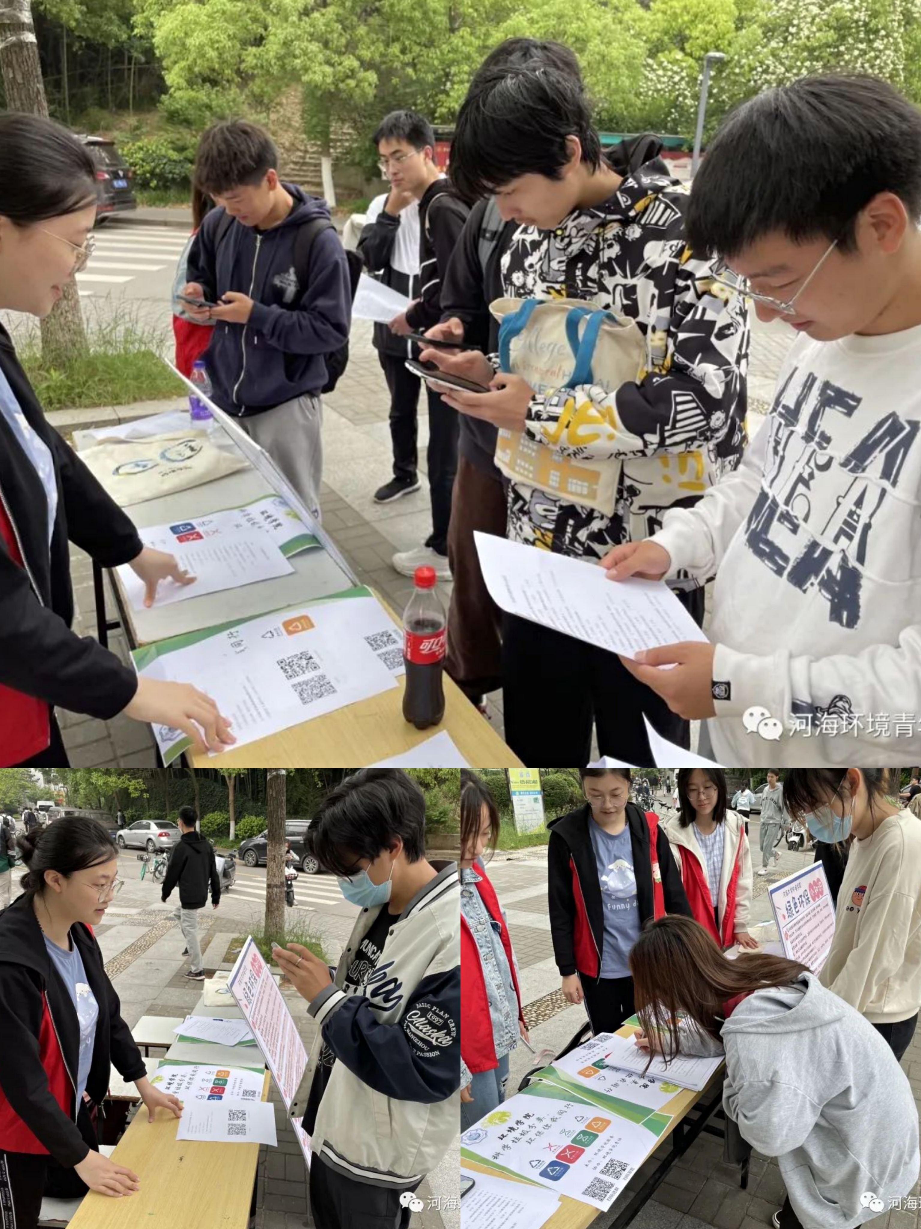 本次活动分成四个队伍,四队志愿者进行不同的志愿服务。部分志愿者在六食堂前向同学们发放关于垃圾分类的宣传单,呼吁大家提高垃圾分类意识。