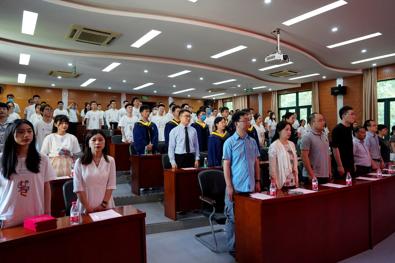 毕业典礼伊始,全体师生共同起立奏唱国歌《义勇军进行曲》。在高亢的国歌声后,王沛芳院长以视频的方式向所有毕业生们表示了祝福和殷殷期许,并期待着毕业生们可以在未来大有作为,为国贡献。