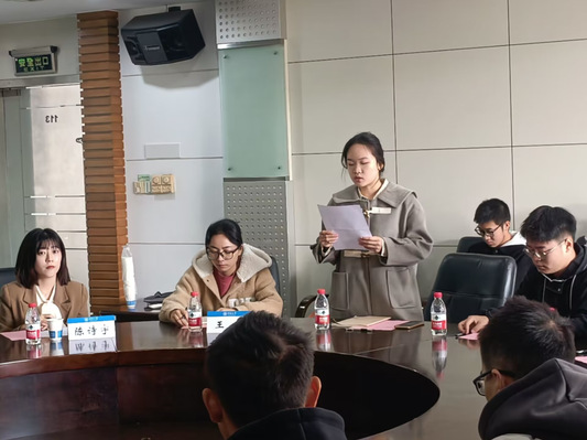 学院学生团委副书记姚雪桢同学对2022年的学生工作进行了汇报。她从“行思想旗帜,然时代烈宴”、“学生文化体育建设”、“强化学生实践能力培养”、“发挥核心力量,增强组织建设”四个方面带大家回顾了2022年学院学生组织举办的各项活动。她强调,威尼斯国际2299cc团委作为一心双环核心,要充分发挥核心表率作用。威尼斯国际2299cc委员会将不忘初心、砥砺前行,继续为学院同学展示学院和学校服务。