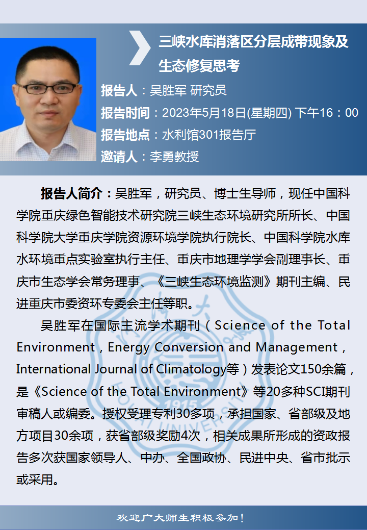 学院学术报告:三峡水库消落区分层成带现象及生态修复思考